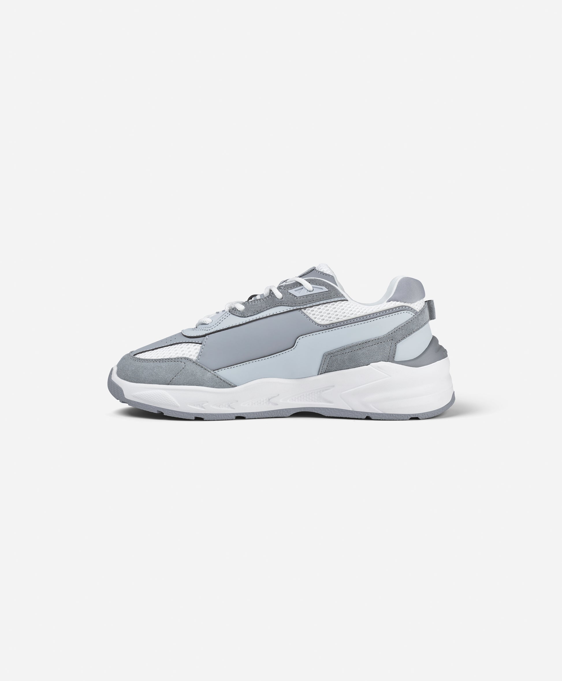 Clean lines, muted tones, and technical execution. SX Barely Blue pairs thick-cut suede across the toe and sides with tough, breathable fabrics and spacer mesh. Reflective 3M outlines the angular panelling, tied together with thin round friction laces for a secure fit.