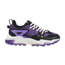 - Full grain black and purple hybrid-tanned leather and vegan leather upper.